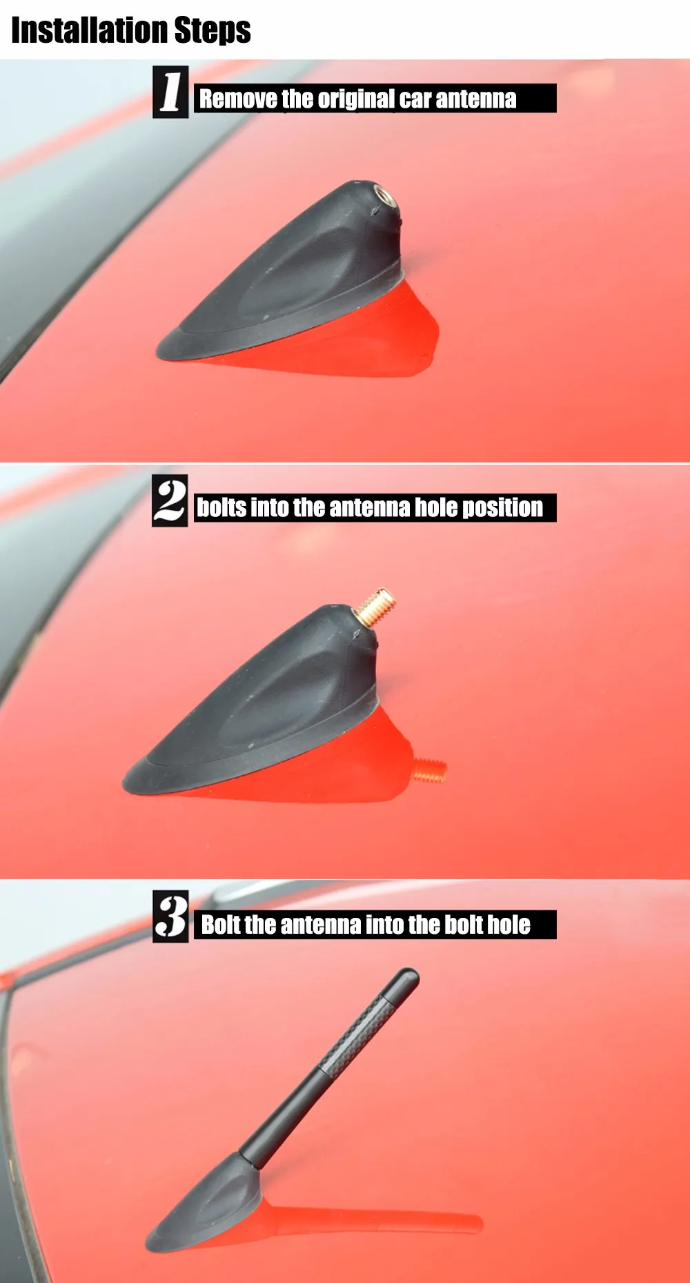 Технические характеристикиСостояние: 100% новыйЦвет: черный, синий, серебристый, красныйМатериал: заготовка из алюминия с накладкой из углеродного волокнаДлина:12 см/4,7 дюймовКнопка Диаметр: около 1,5 смПосылка Вес: 66gСовместимость: Подходит для подавляющего большинства оригинальных автомобилей с антенной и съемными моделями антенн. Конструкция из углеродного волокна обеспечивает особый спортивный стиль.Характеристика:1) Эта антенна функциональна и предназначена для радиосигнала AM/FM.2) принт из углеродного волокна придает уникальный внешний вид.3) Поставляется с 4 винтами разного размера и 2 универсальными адаптерами.4) Заменяет на наличие мачты/кнут антенны.5) Прямая замена болта, никаких изменений не требуется.Посылка включает в себя:1 x автомобильная антенна радио из углеродного волокна4 винта M3 M4 M5 M62 x Резиновое КольцоПожалуйста, прочитайте следующее сообщение перед покупкой:Этот продукт предназначен для замены выдвижной части антенны. Посылка не состоит из проводов и частей, необходимых для замены вашей радиосистемы.Если ваш автомобиль оснащен навигацией с завода/мобильный телефон интеграции, пожалуйста, подтвердите, что антенна будет заменена только для радиосигнала.Эта антенна не может заменить встроенные антенны на GPS и/или мобильный телефон. Он не предназначен для получения таких сигналов.