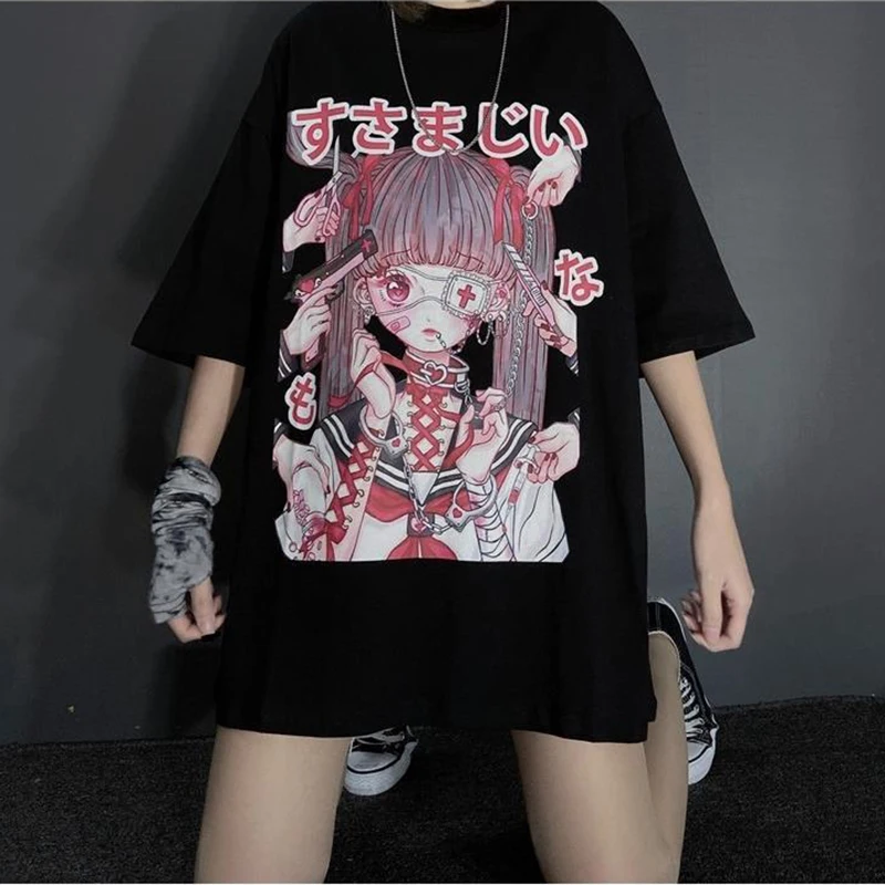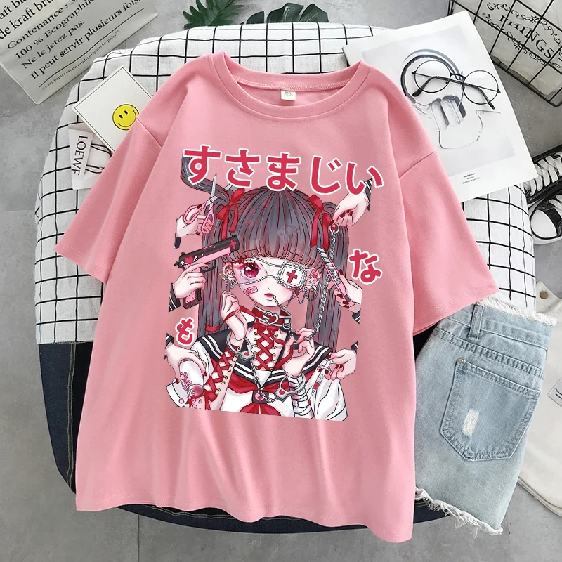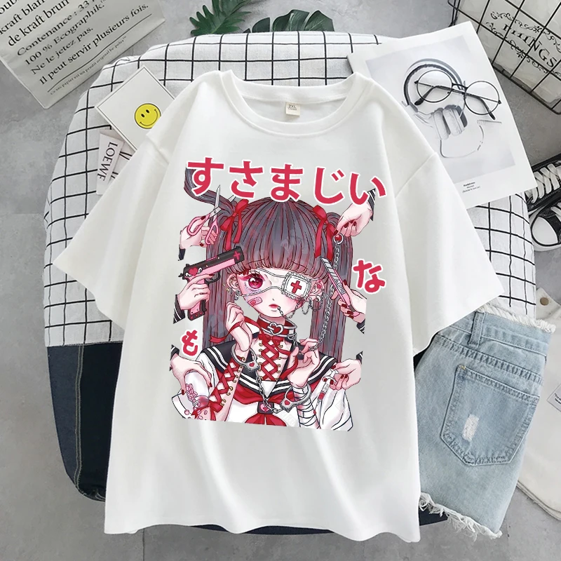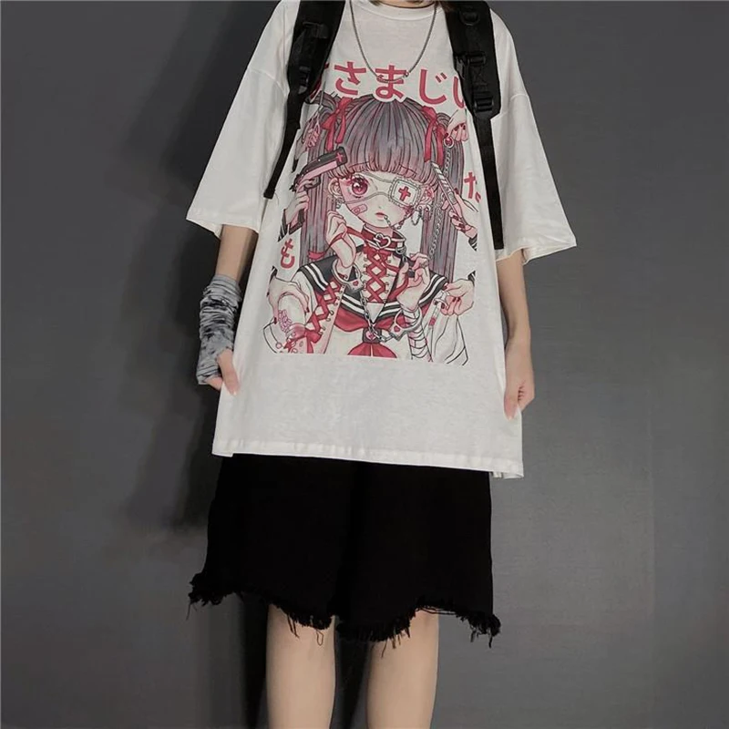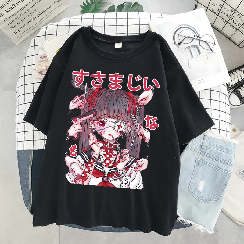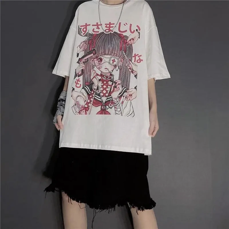Y2k Летняя женская футболка в готическом стиле, свободная женская футболка, хлопковая уличная одежда, женские топы, футболки, одежда в стиле Харадзюку, футболки для девочек