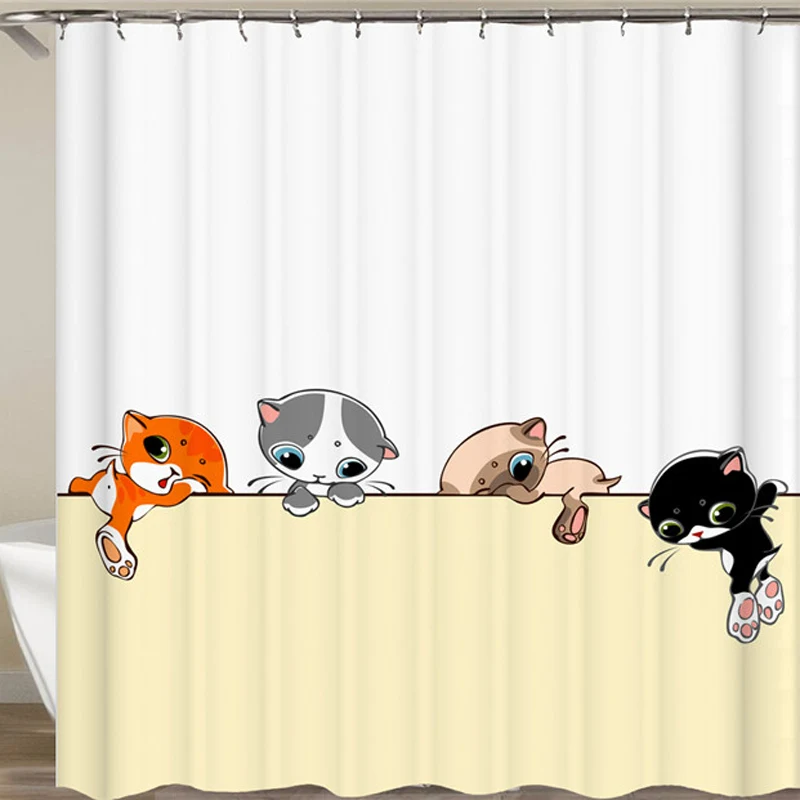 Занавеска для ванной и душа с милыми животными, водонепроницаемая з...