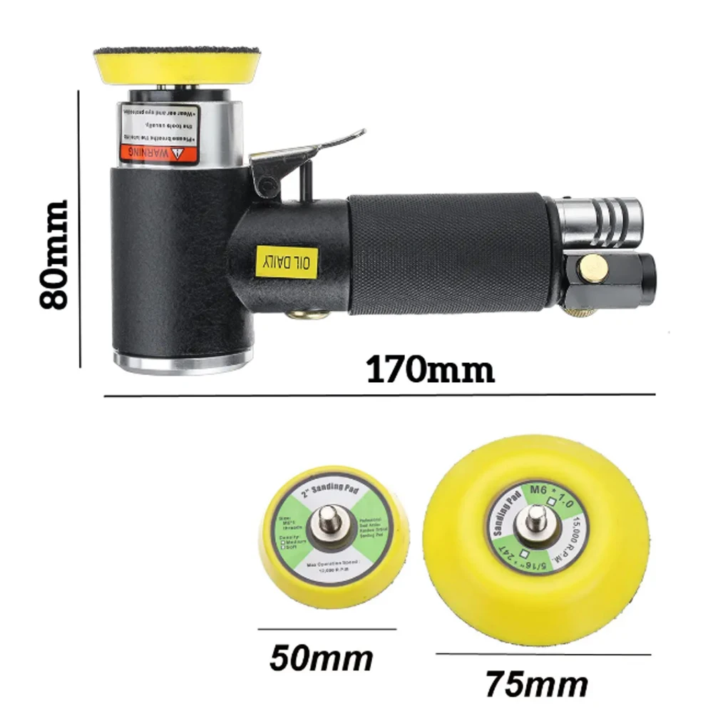 2-дюймовый 3-дюймовый под углом 90 градусов; Шлифовальный станокТехнические характеристики: 2 дюйма 3 дюймаРазмер подкладки: 75 мм, 50 ммРазмер шланга: 3/8''Воздухозаборник: 1/4''Давление воздуха: 90 фунтов на квадратный дюймСкорость подачи: 18000 об/минДиаметр орбиты: 2 ммРасход воздуха: 4cfmРабочее давление: 6,3 кгВес: 900 гДлина: 160 ммМинимальный диаметр шланга: 8 мм или болееПотребление: 1 / 4inМожно ли регулировать скорость: Да