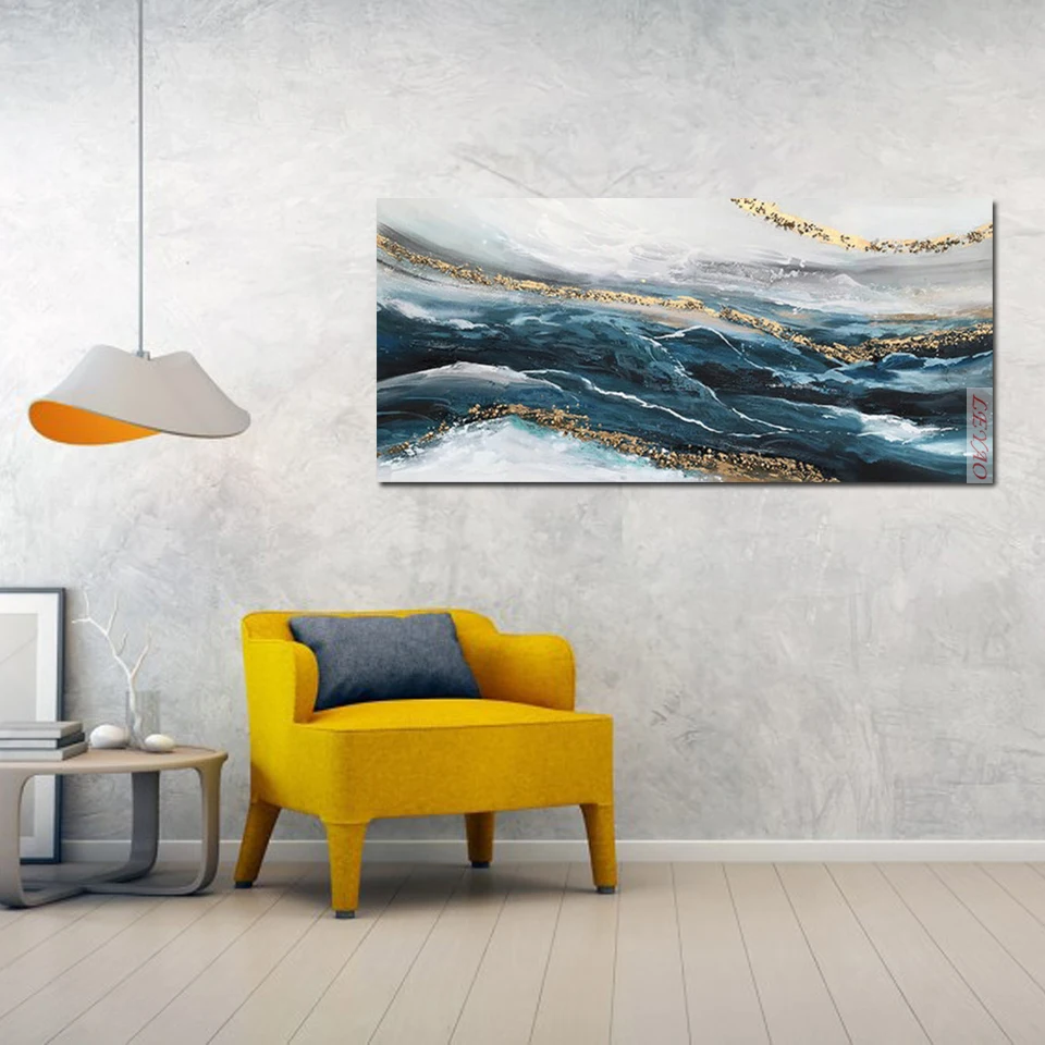 Большая абстрактная Золотая фольга синяя волна алмазная вышивка крестиком набор Алмазная Картина Новое поступление пейзаж мозаика домашний декор