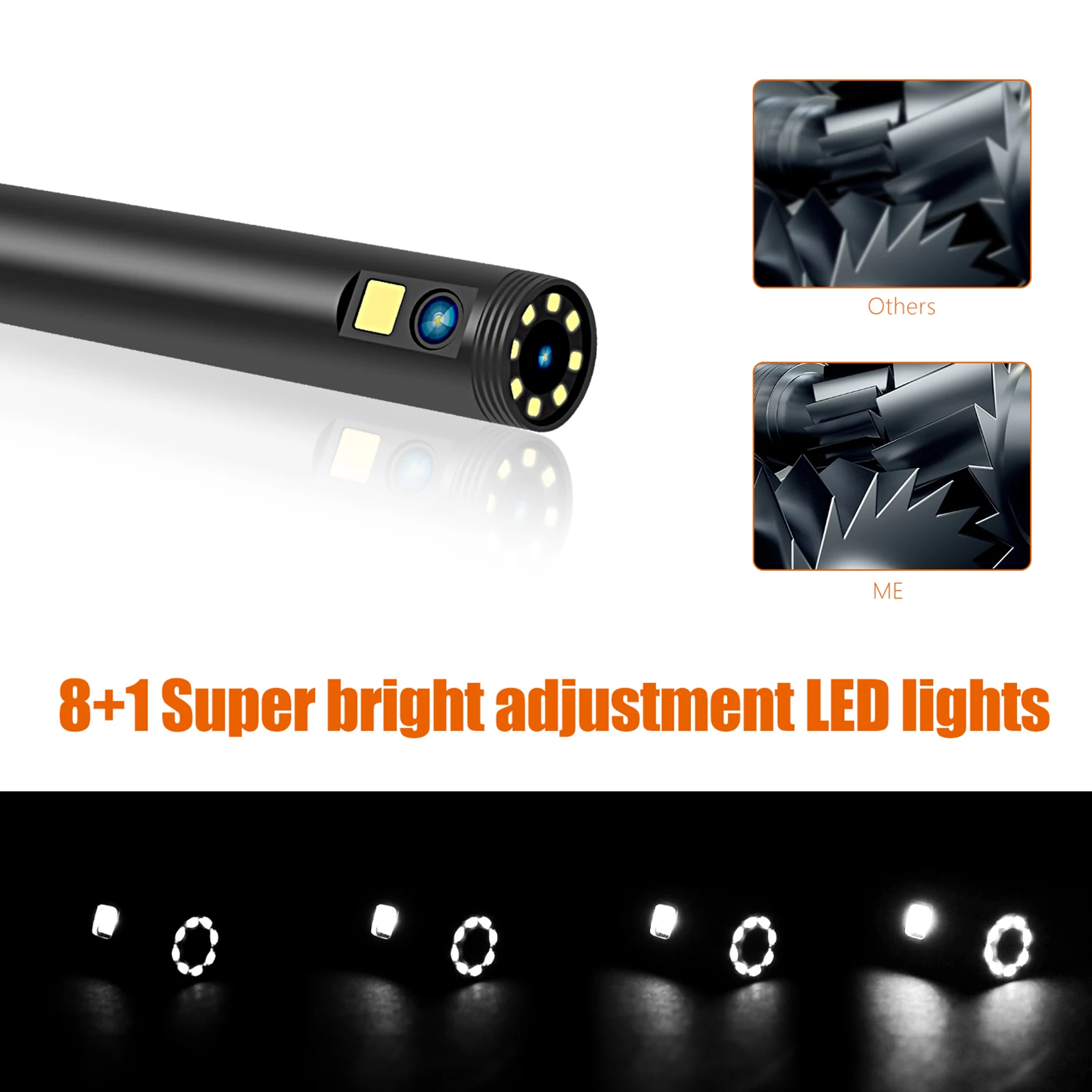Промышленный эндоскопический Бороскоп, камера для осмотра, поддерживает стандартное соединение, 9 встроенных регулируемых светодиодов с регулируемой яркостью IP68