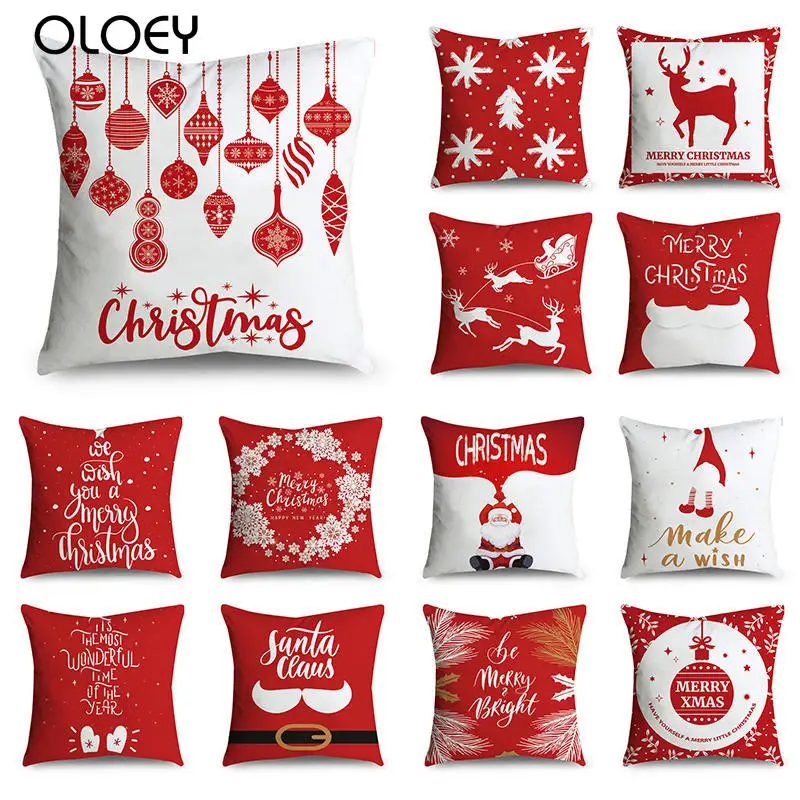 Рождественская наволочка с красным мультяшным рисунком, арт-деко, наволочка для дивана, домашний Рождественский подарок, 45 см * 45 см