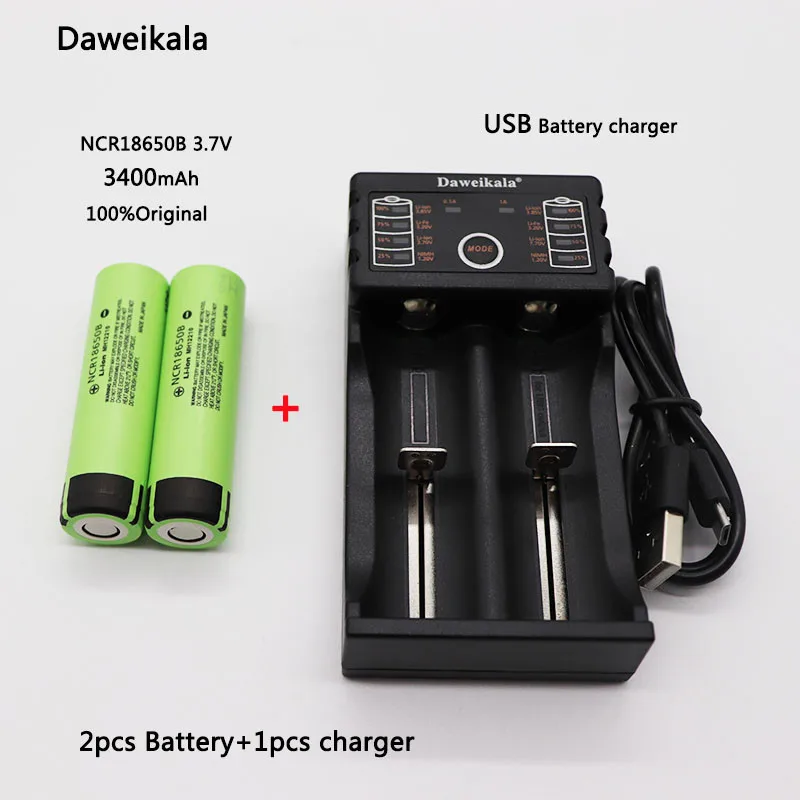 100% Оригинальный литиевый перезаряжаемый аккумулятор NCR18650B 3,7 в 3400 мАч 18650 для фонариков Panasonic, аккумуляторы и зарядное устройство USB