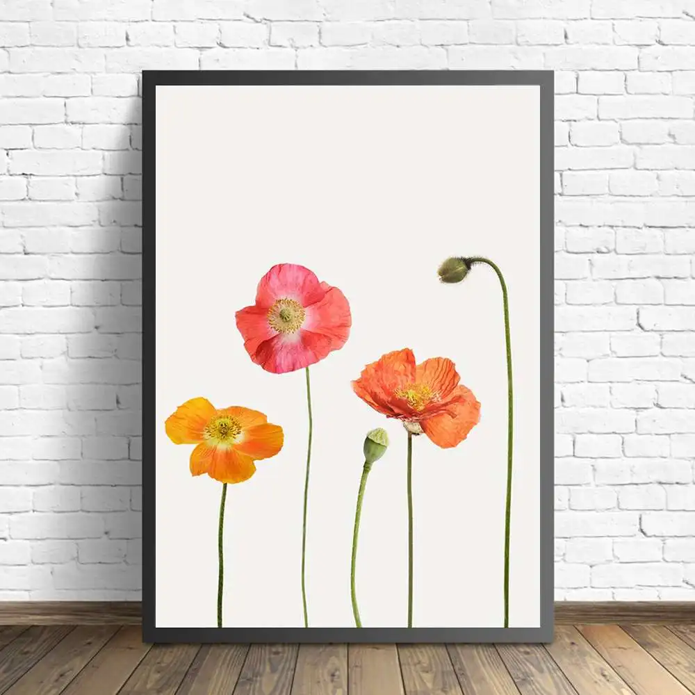 Абстрактная Цветочная живопись в оттенках оранжевого, красного, жел...