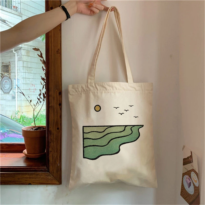 Сумки-шопперы в стиле каваи с изображением гор для преподавателей искусства, сумка для покупок, сумка-тоут, сумка на плечо, холщовые сумки большой вместимости для колледжа