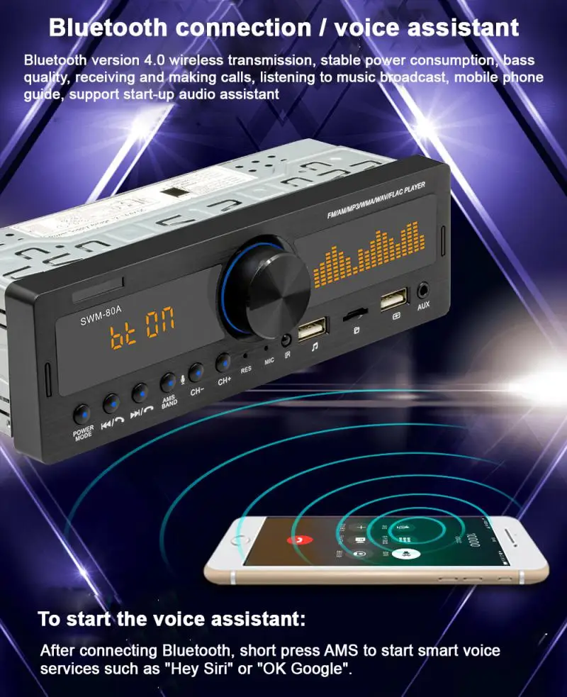 8. Мобильный телефон голосовой помощник (Голосовое управление) (Примечание: просто включите переключатель голосового управления телефона через BT. (Если телефон пользователя на английском языке, он поддерживается)
