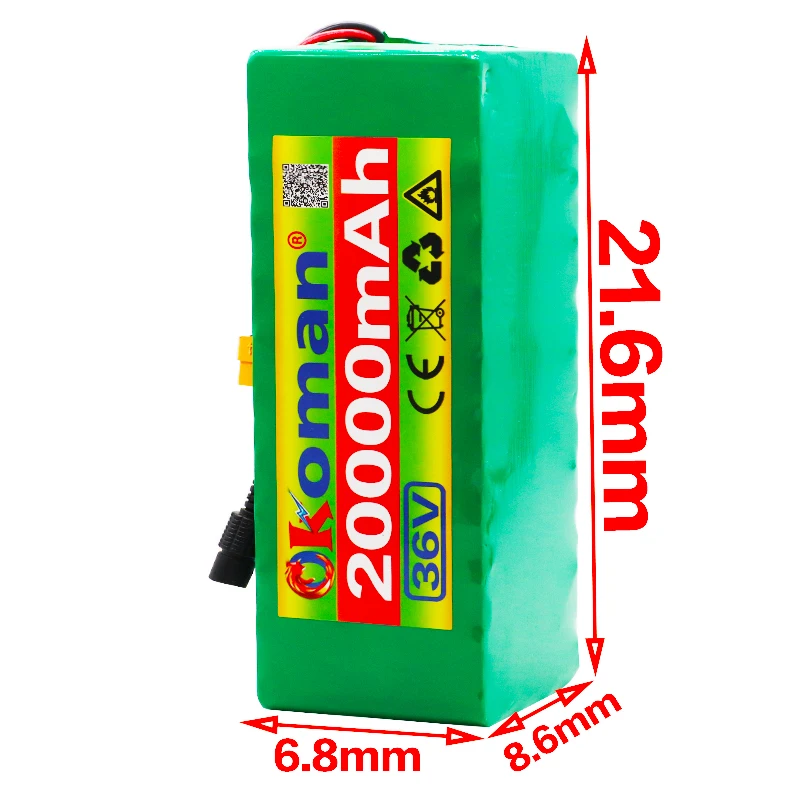 Новый 36V аккумулятор 10S4P 20Ah 36В 18650 аккумулятор 500W 42v 20000mAh для электровелосипеда с BMSПараметры батареи:Бренд батареи: okomanМодель батареи: 36V 20ah с индикатором вольтметра емкостиНоминальная мощность: 20ahНоминальное напряжение: 36 ВСочетание батарей: 4 параллельные серии 10Размер батареи: 66X216 X80 ммКоличество батарей: 40Мгновенный максимальный ток разряда: 30AМаксимальный непрерывный ток разряда: 15аСтандартный зарядный ток: 2AВремя зарядки по стандартному току зарядки: 4 часаМаксимальная непрерывная зарядка тока: 5AВес батареи: около 2 кгПоскольку батарейный блок является индивидуальным продуктом, возможна погрешность в весе и размере аккумулятора. Прошу прощенияДетали в комплекте:1. Е-байка 36В 20Ah литий Батарея (отправляет "xt60" вилку по умолчанию. Если вам нужен штекер «T», пожалуйста, оставьте сообщение «T plug»)2. Зарядное устройство 42 в 2 А (с вилкой для зарядного устройства EU/US, которую вы можете выбрать, если нет специальных инструкций, мы отправим вилку европейского стандарта по умолчанию)Так как некоторые посылки могут отправлять только 2 кг товаров в некоторых странах, некоторые страны должны отправить две посылки.