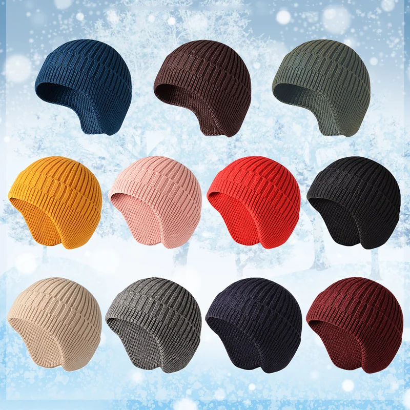 Модные вязаные шапки-бини с ушами женские и мужские шапки для влюбленных осень-зима теплая плотная ветрозащитная шерстяная шапка с защитой от холода ювелирные изделия