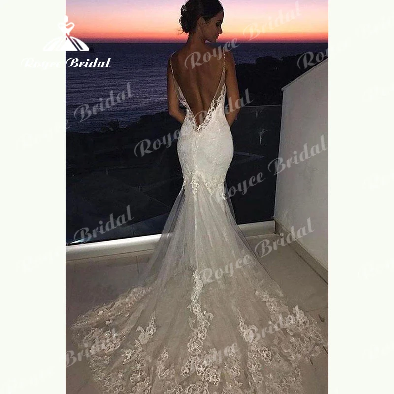 Очаровательные Белые Кружевные Свадебные платья с открытой спиной и юбкой-годе на тонких бретелях для невесты 2022