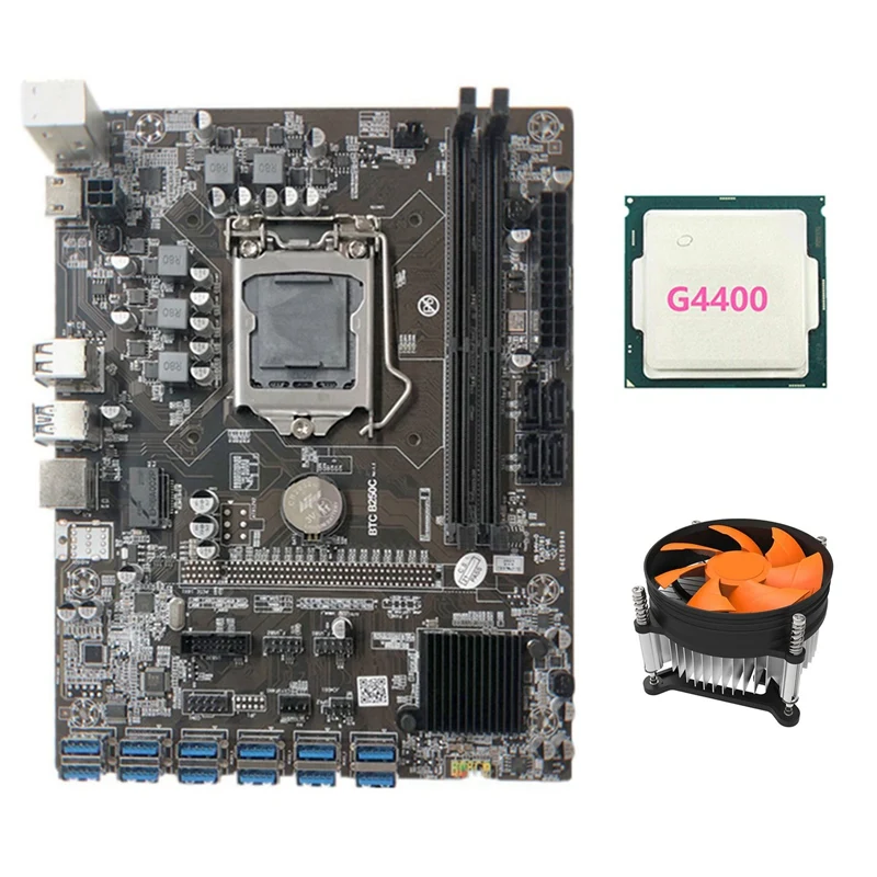 Материнская плата для майнинга B250C с RGB вентилятором + ЦП G4400 ...