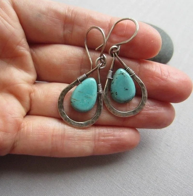 Уникальные креативные бирюзовые висячие серьги в форме капли воды, шелковые Ретро креативные серьги-молотки с ручной обмоткой