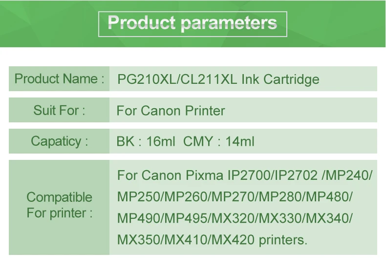 Если ваша оригинальная модель PG210 CL211 (или PG210/CL211XL) чернильный картридж, не стесняйтесь обращаться к нам за консультацией!