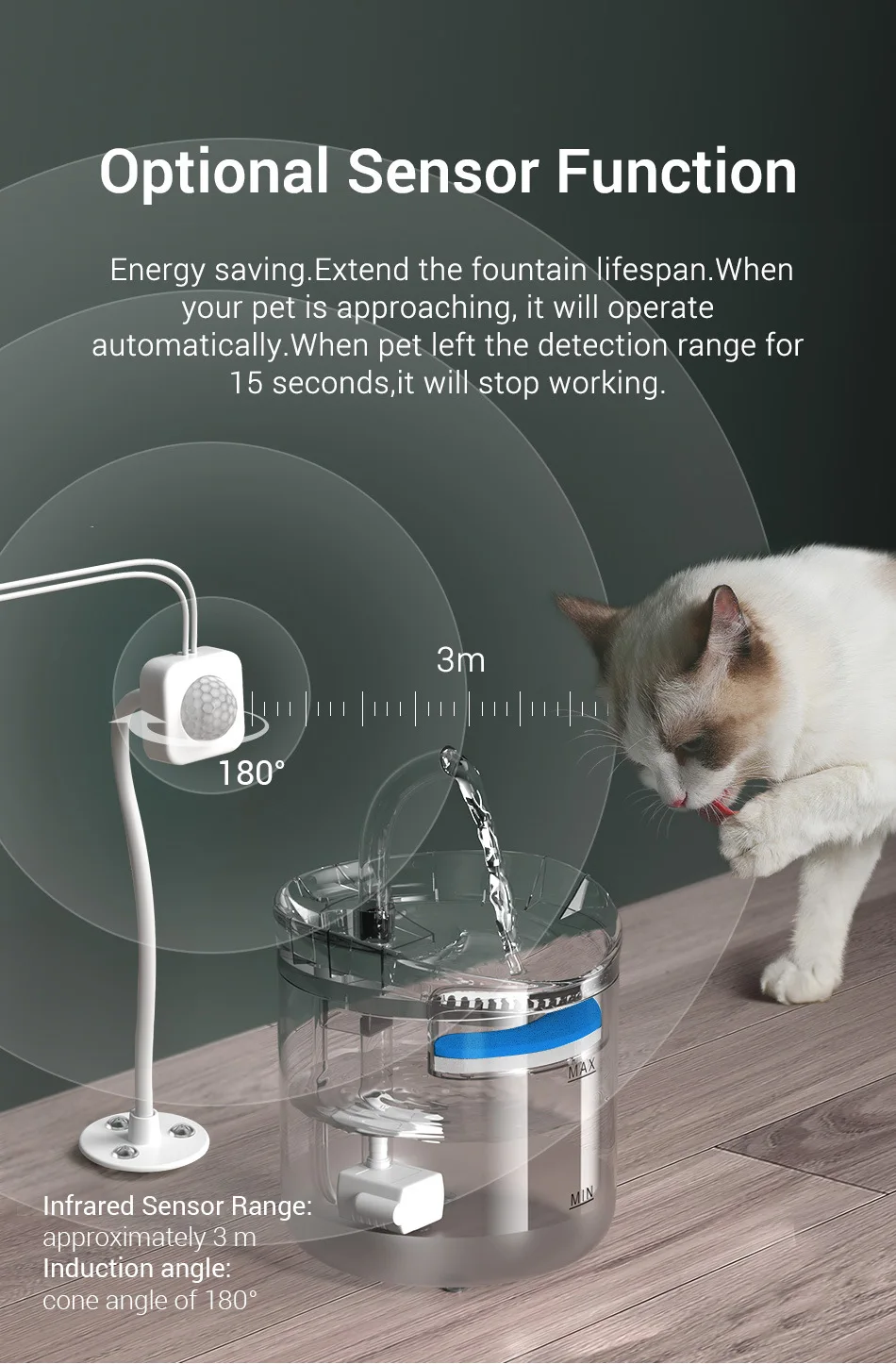 Feature11water fountain for cat with sensor / drinking bowl for cat