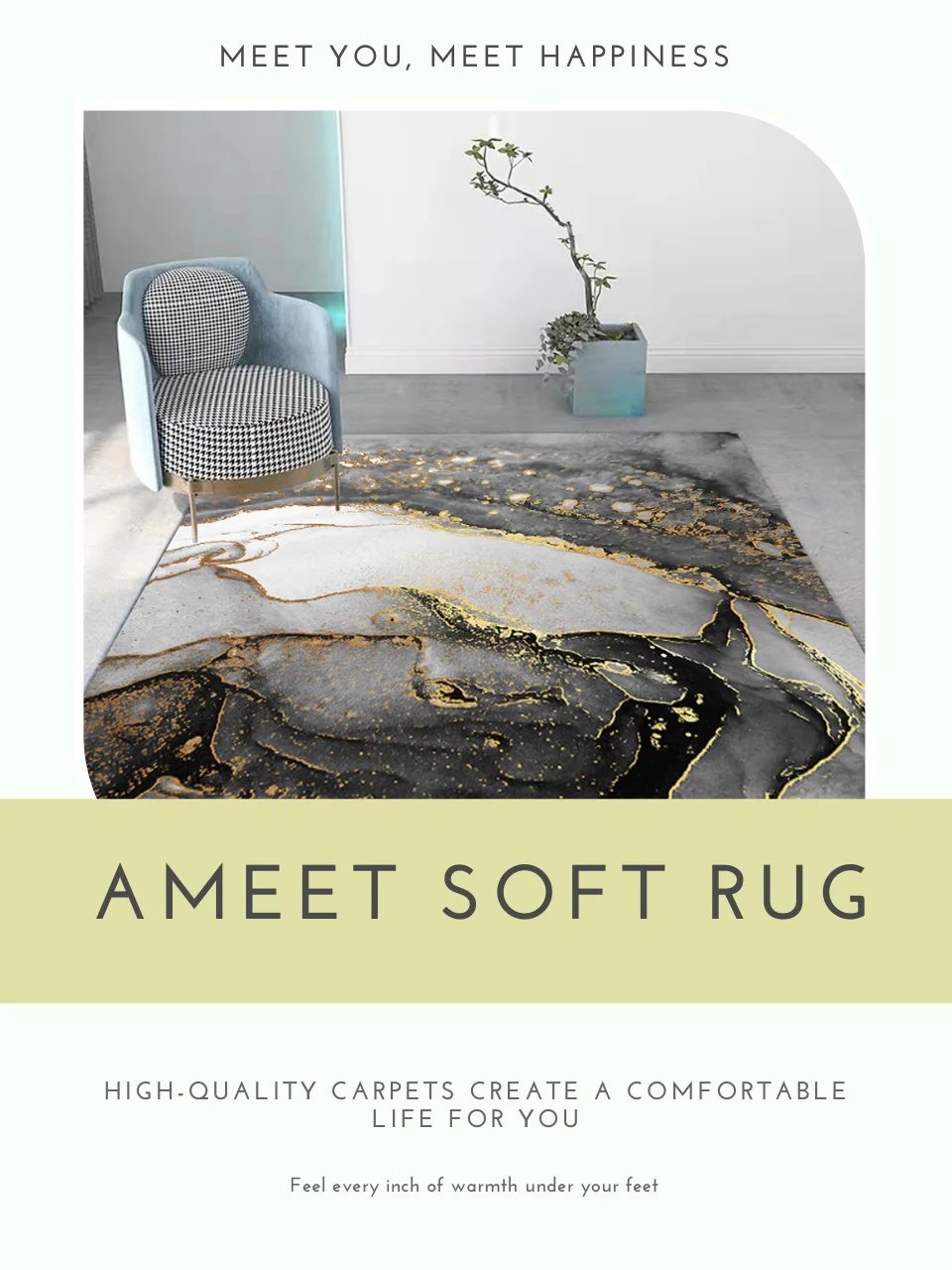Современный скандинавский большой ковер для гостиной, 3D-принт, черное золото, абстрактные чернила, краска, коврик для кухни, спальни, домашнего журнального столика, коврик