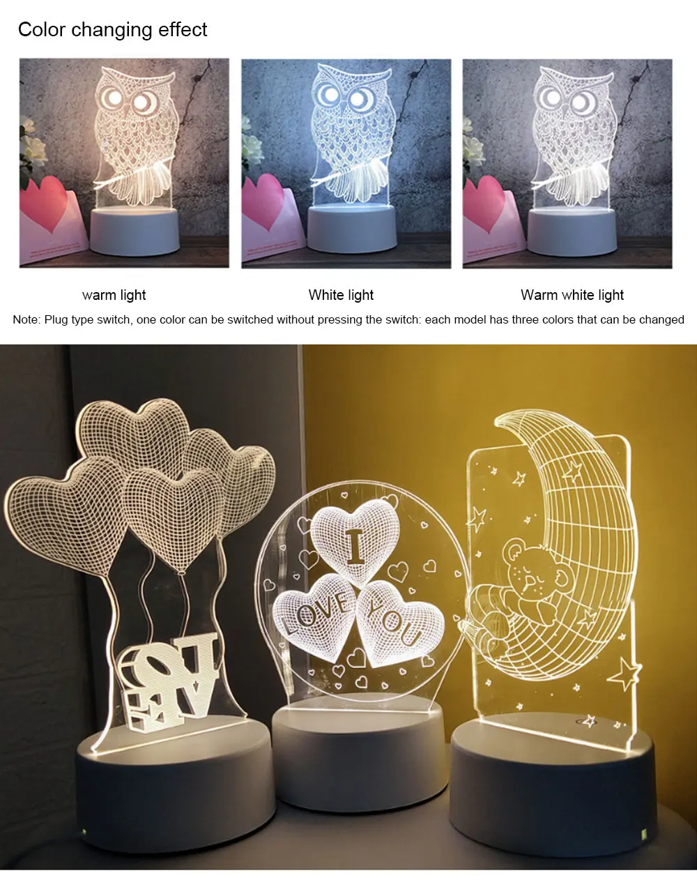 3D Акриловый светодиодный ночсветильник Романтическая любовь, насто...