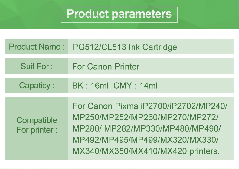 Если ваша оригинальная модель PG512 CL513 (или PG512/CL513XL) чернильный картридж, не стесняйтесь обращаться к нам за консультацией!