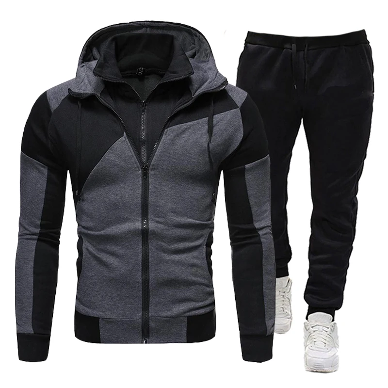 Мужская одежда, куртка с капюшоном и двойной молнией, спортивные брюки, спортивный костюм, мужская повседневная Уличная одежда, спортивный костюм