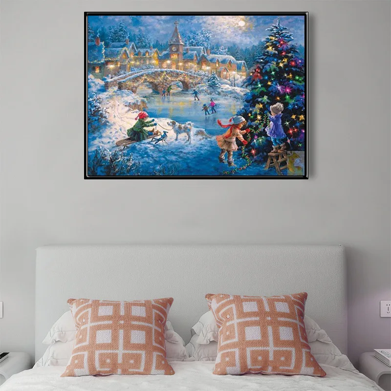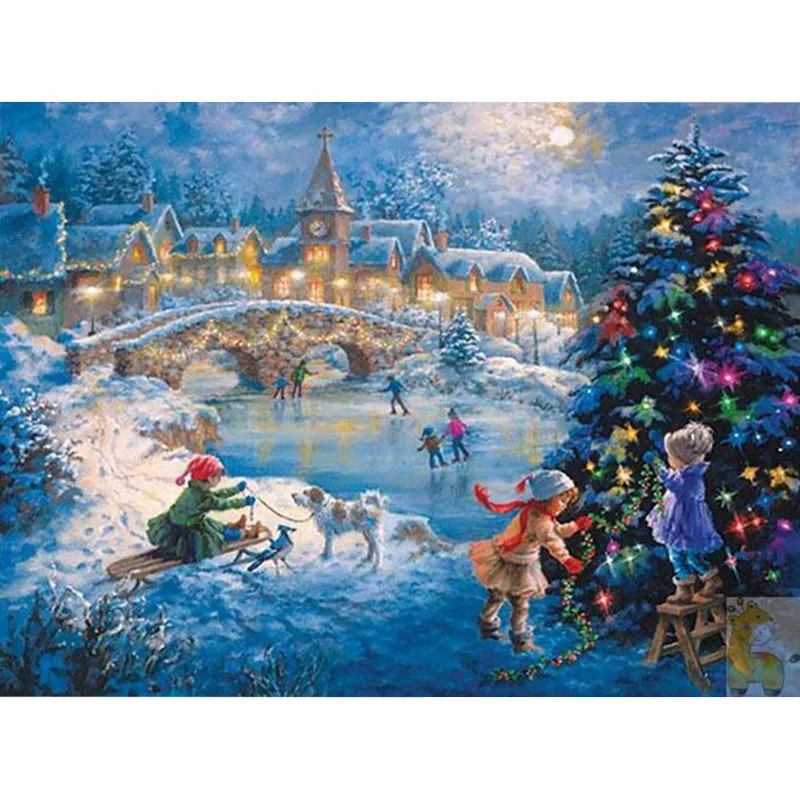 Алмазная 5D картина сделай сам, Рождественский пейзаж, полная вышив...