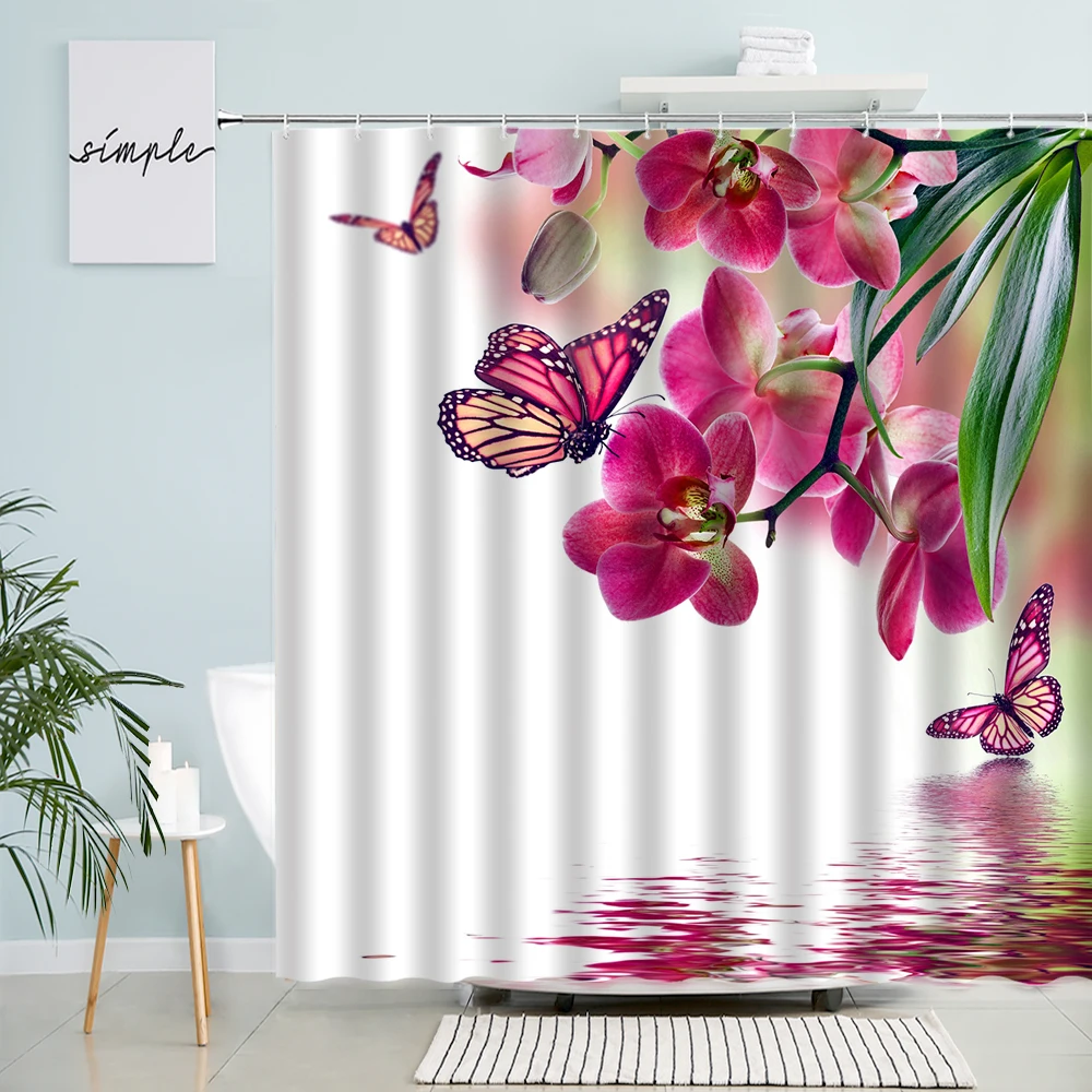 Зеленые растения цветы занавеска для душа s Бабочка Роза забор стен...