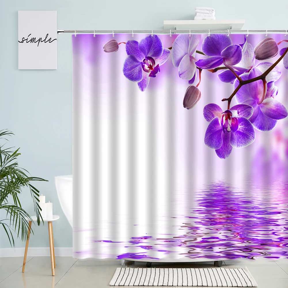 Занавеска для душа Zen с орхидеями и фиолетовыми бабочками, декор д...