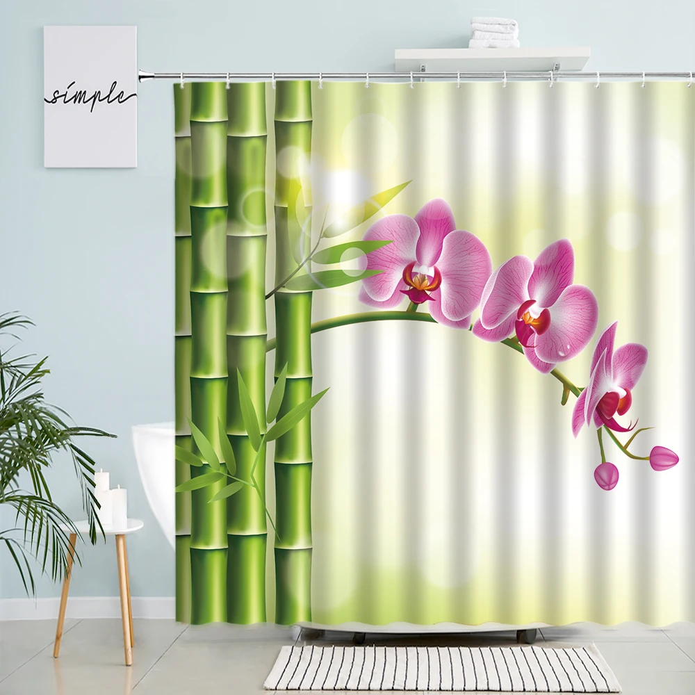 Дзен камень зеленый бамбук цветы занавеска для душа Декор для ванно...