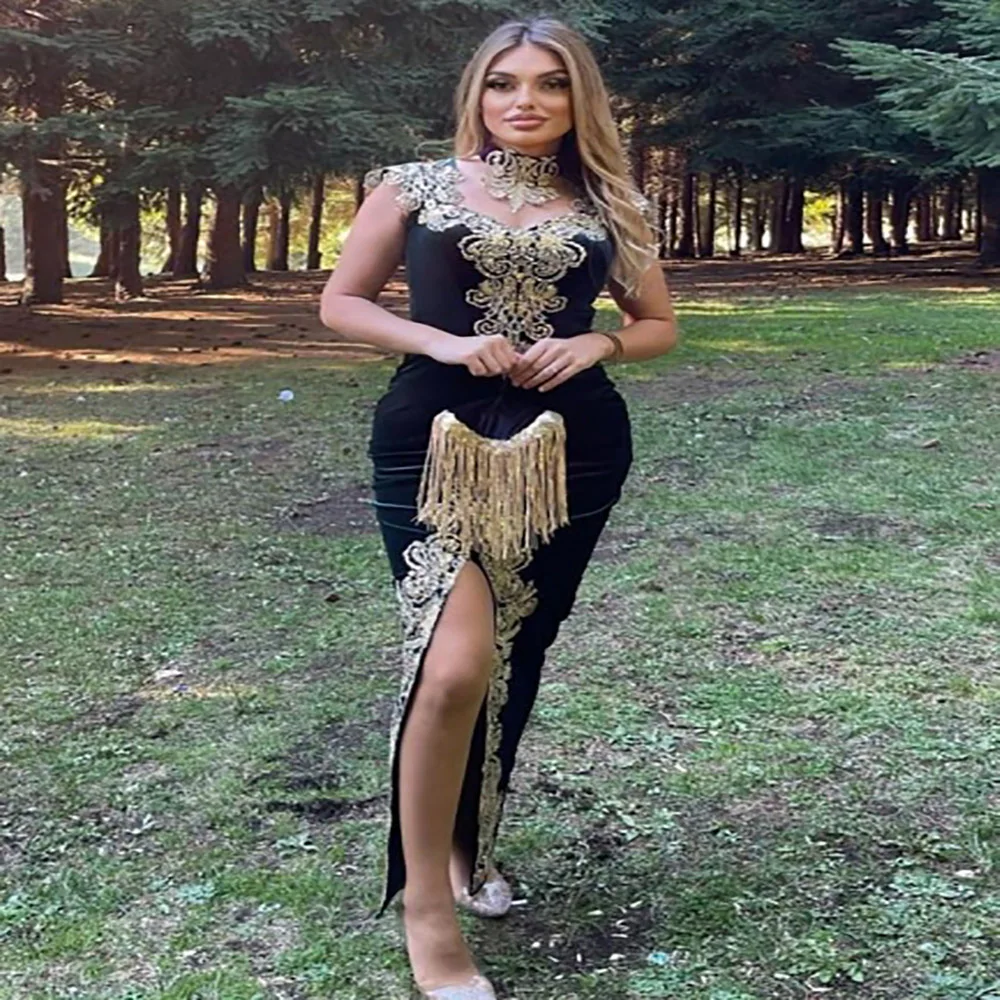 Размера плюс зеленый бархат Karakou Algerien вечерние платья с Over...