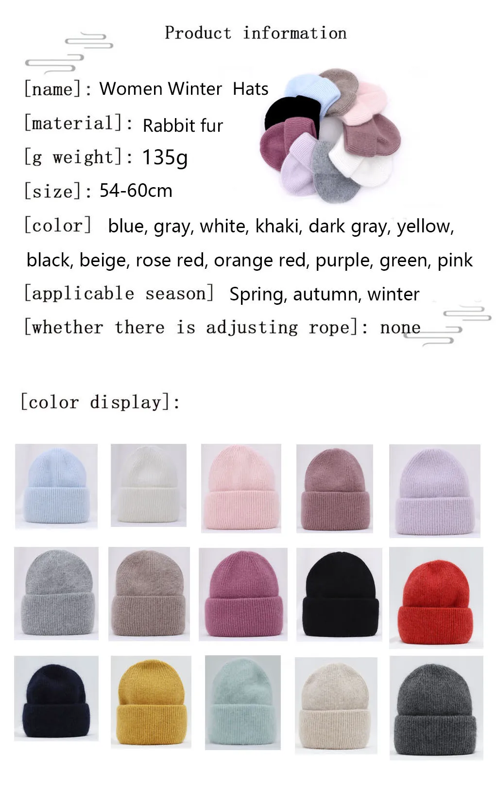 Зимние вязаные облегающие шапки из натурального кроличьего меха для...