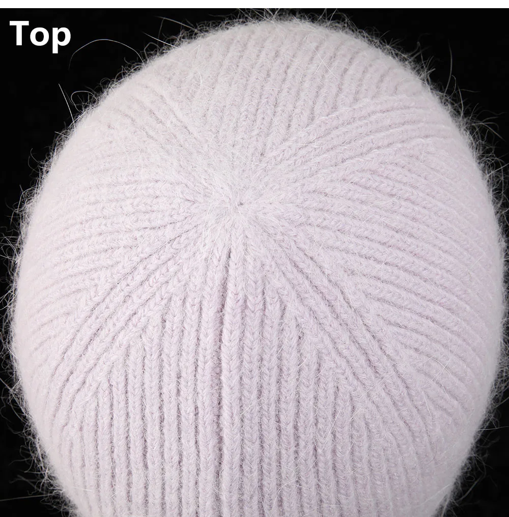Женская шапка Beani из кроличьего меха, Ангорская Вязаная Мягкая те...