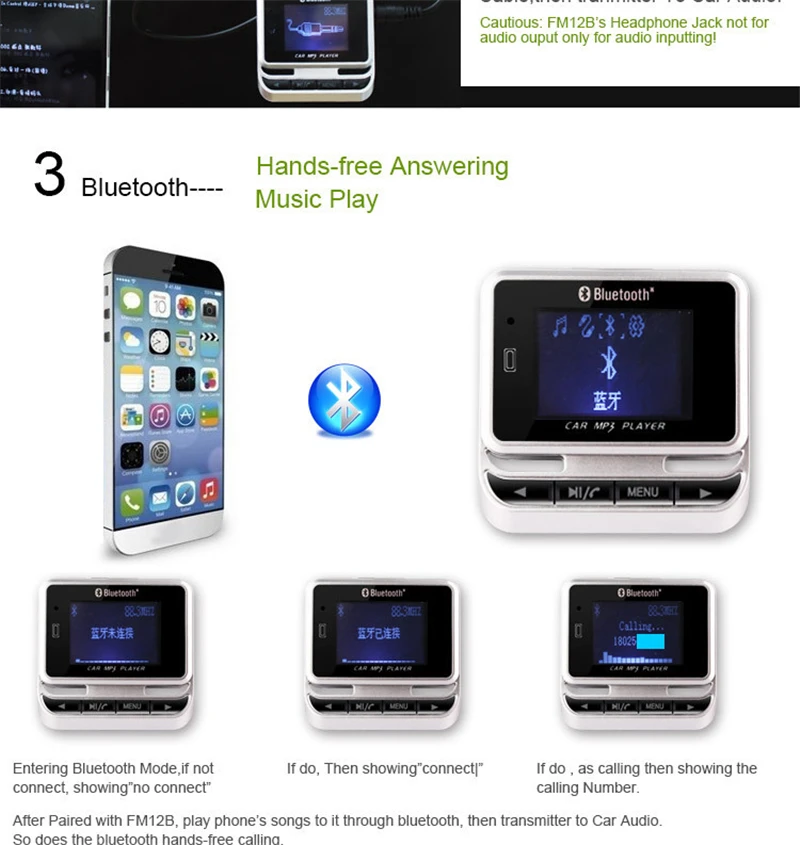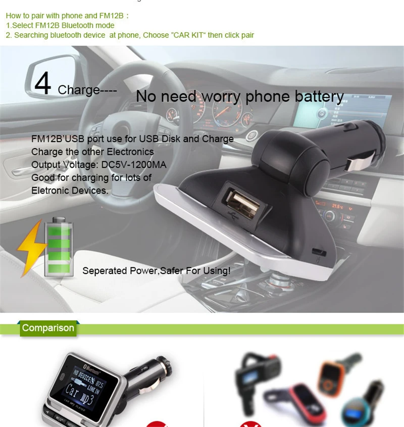 Bluetooth Автомобильный MP3-плеер FM12B, автомобильный FM-трансмитт...