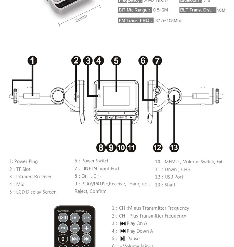Многофункциональный FM-передатчик, Автомобильный MP3-плеер с громко...