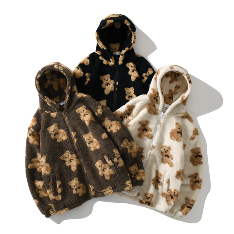 Флисовые куртки с капюшоном и мультяшным медведем, Женская Повседне...