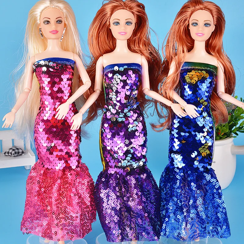 Модное платье с блестками платье принцессы русалки для кукольной одежды 11,5 ''игрушки для девочки Рождественский подарок 3 шт.компл. или 4 шт.компл.