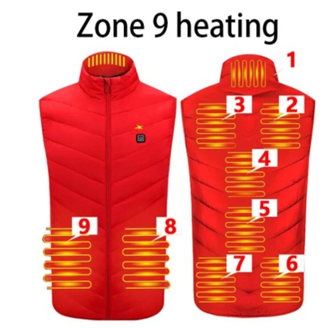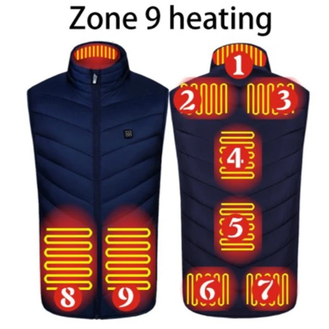 Жилет с подогревом S-6XL, 9 зон с подогревом, моющийся жилет с подо...