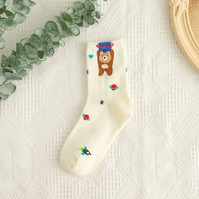 Осенне-зимние новые милые забавные хлопковые носки в Корейском стиле с изображением астронавта и планета с японским мультяшным рисунком