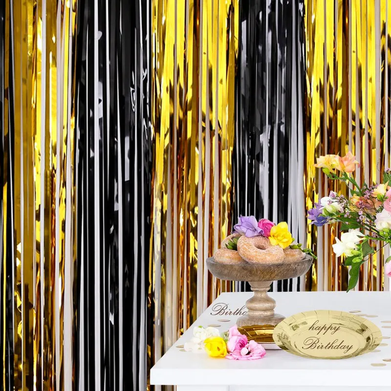 Фон для вечеринки занавески блестящая черная Золотая мишура бахрома фольгированная занавеска фон для дня рождения свадьбы украшение для взрослых на годовщину