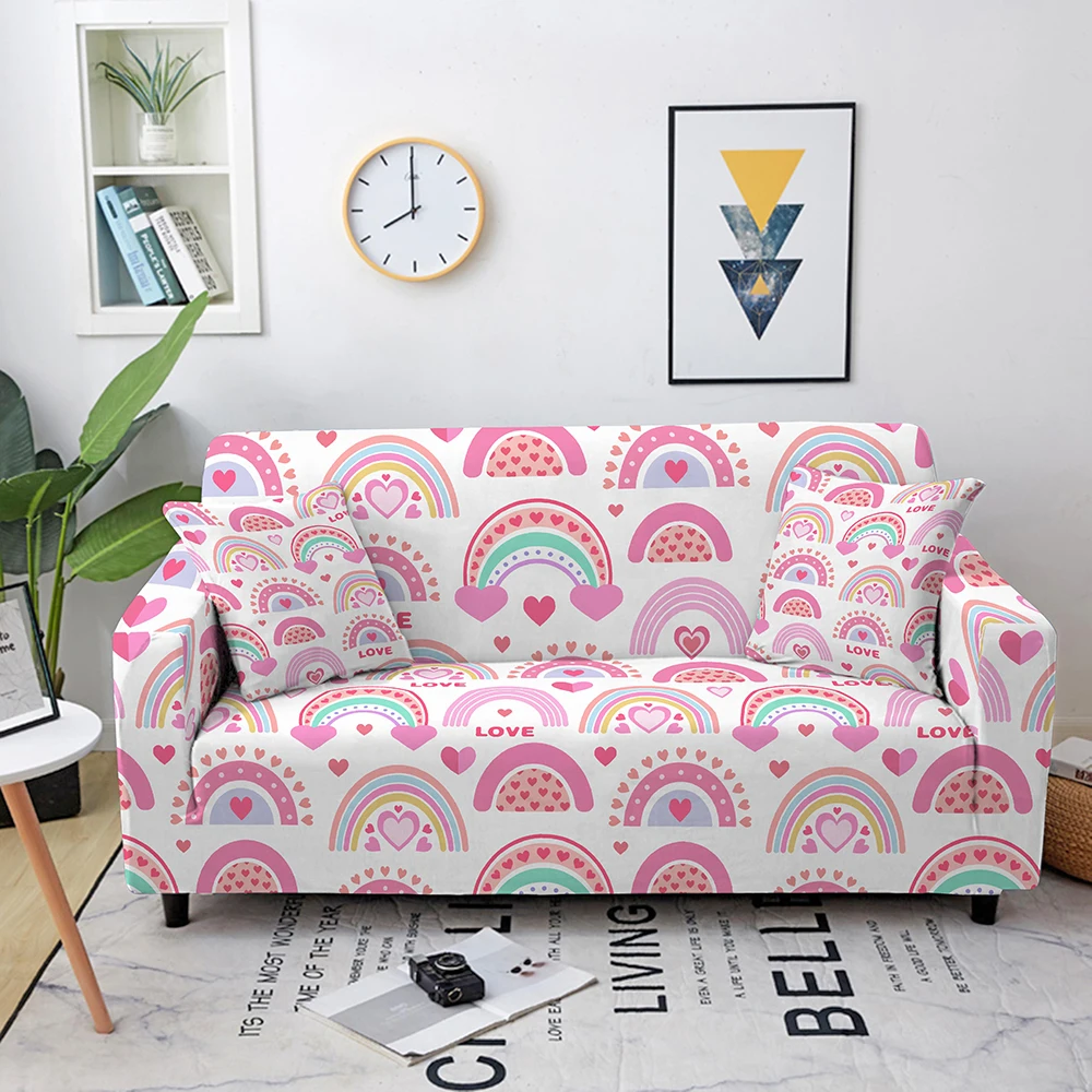 Разноцветные чехлы для диванов с рисунком сердца для гостиной, эластичный чехол для дивана на 3 места, растягивающийся чехол для дивана с принтом сердца, защита для дивана