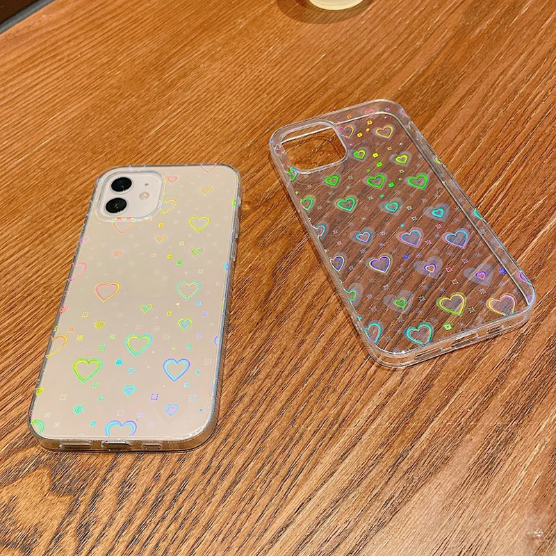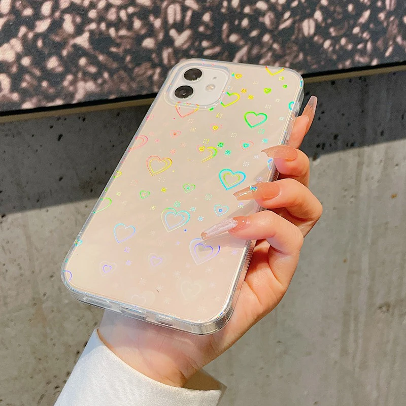 Прозрачный лазерный чехол с сердечками для телефона Samsung A32 A52...