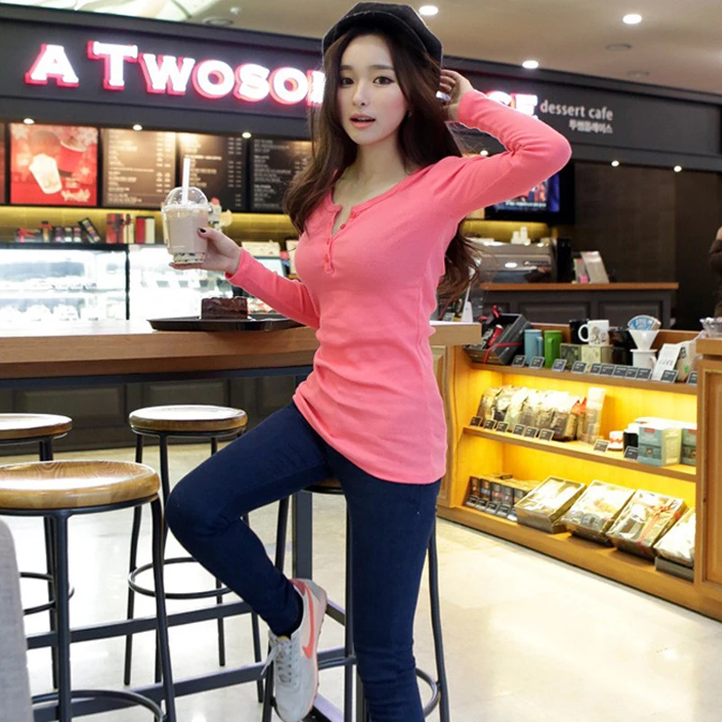 Осенняя женская футболка с длинным рукавом, Хлопковый жакет на пуго...