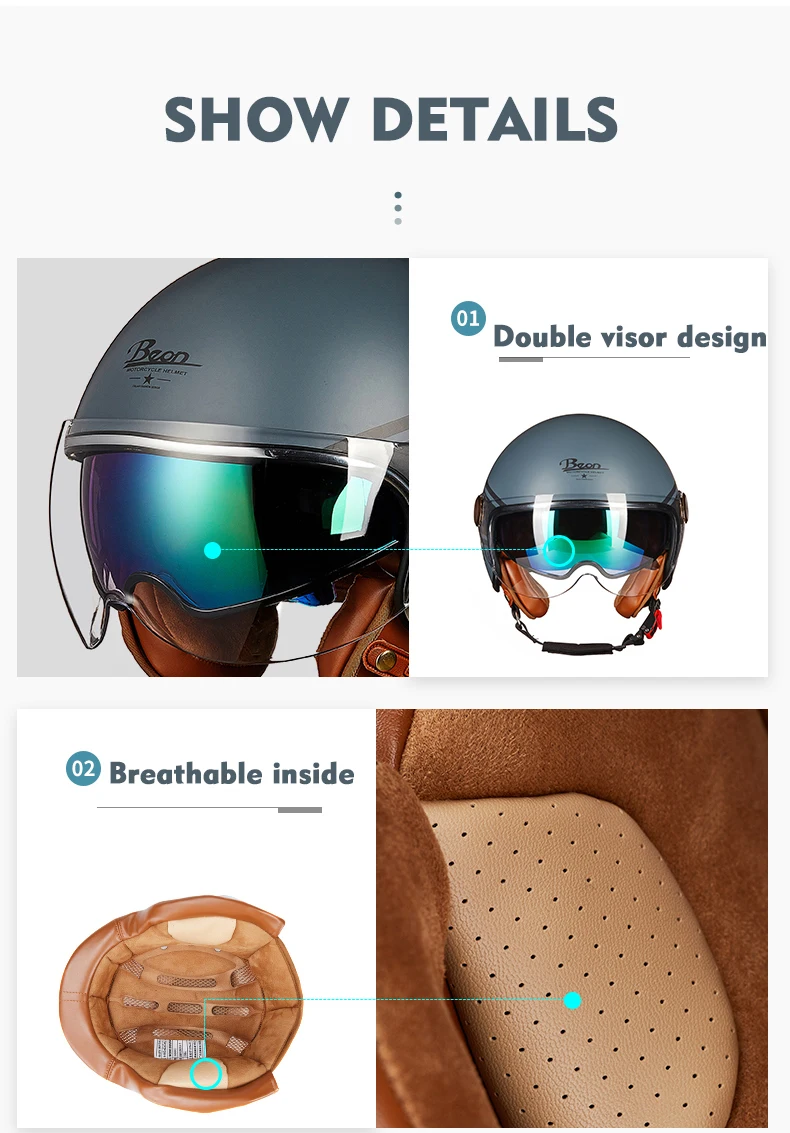 Мотоцикл 34 Ретро шлем с двойным козырьком Классический Новый Moto ...