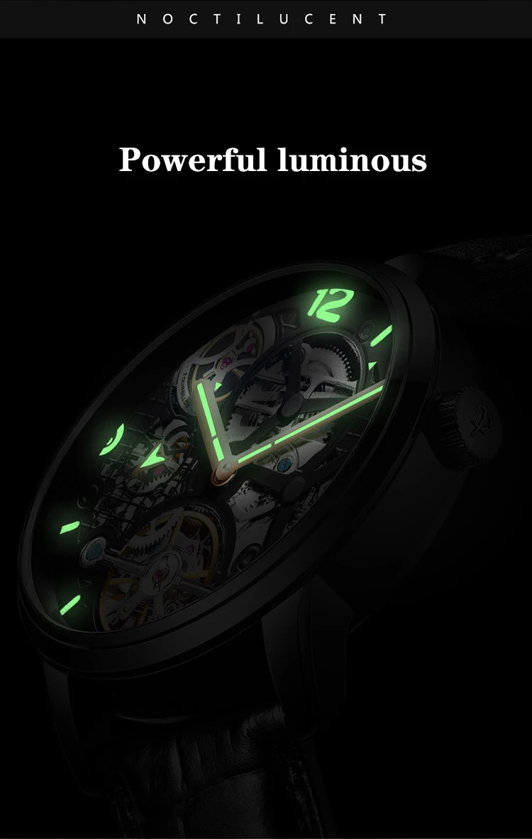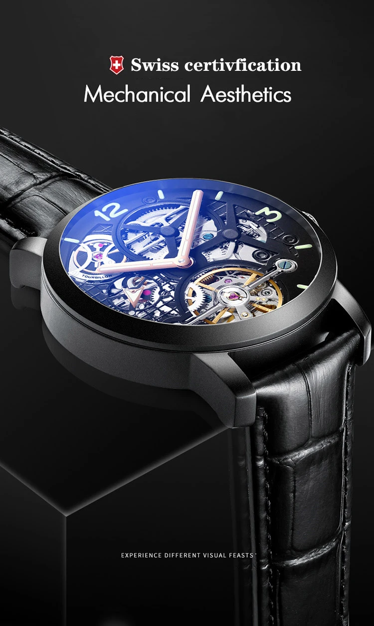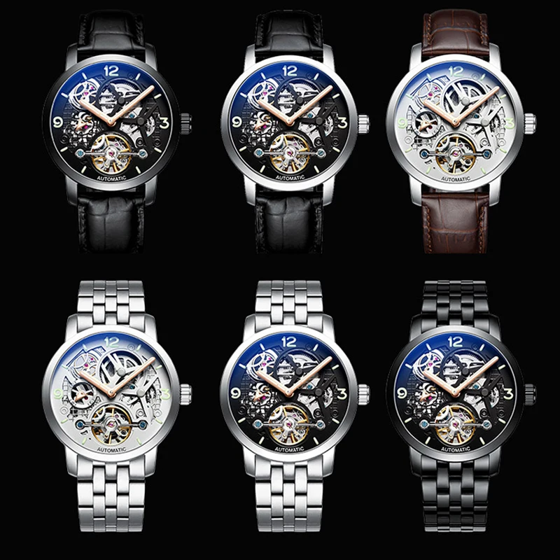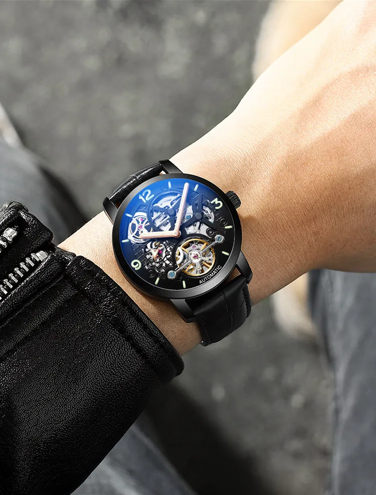 Часы наручные мужские автоматические с турбийоном, с кожаным ремешком