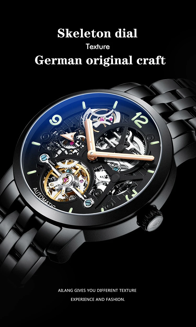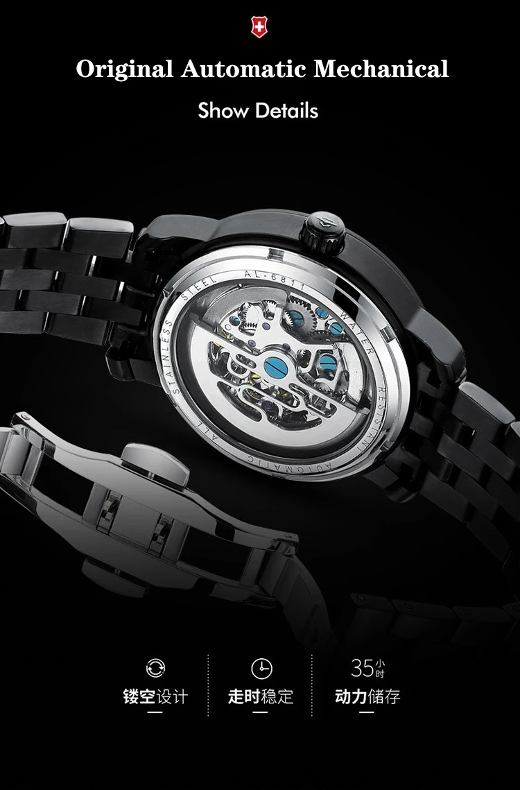 AILANG Mes деловые механические Автоматические двусторонние механические часы Luminousl из нержавеющей стали водонепроницаемый ремешок 6811A
