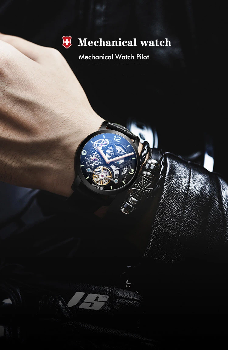 Часы AILANG мужские с кожаным ремешком, оригинальный дизайн, автома...