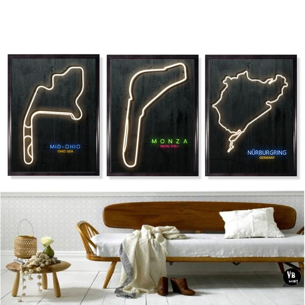 Неоновый художественный постер F1 формула 1, Картина на холсте, Настенная картина F1, гоночный трек, принты в разных странах, Современное украшение для дома