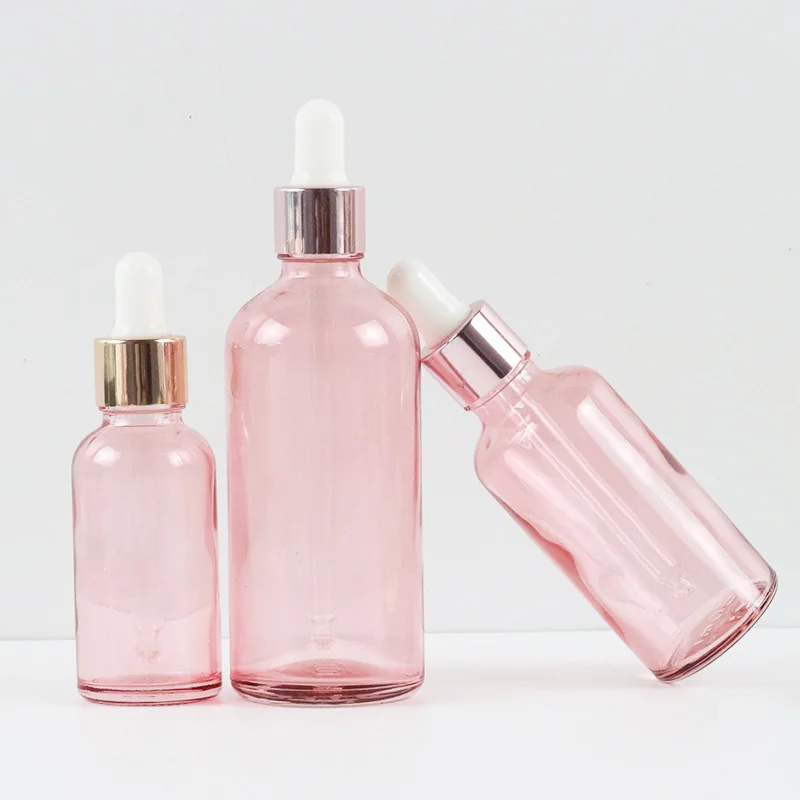 Розовые стеклянные флаконы-капельницы 5103050100 мл, флаконы розового золота для эфирного масла, лосьона, сыворотки с пипетками, многоразовая пустая бутылка