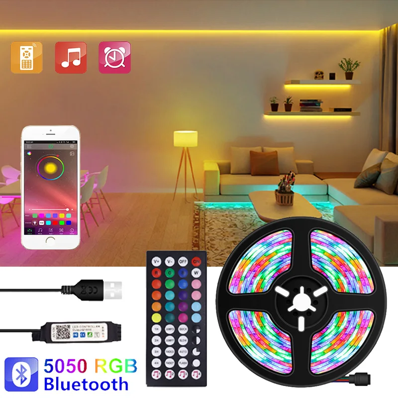 Светодиодная ленсветильник 1-5 м, USB, Bluetooth 5050, RGB светильник SMD, 5 в постоянного тока