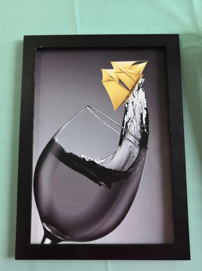 Винный бокал с маленькой лодкой, холст с принтом красного вина и бутылки, искусство на стену, картина для столовой, украшение для ресторана