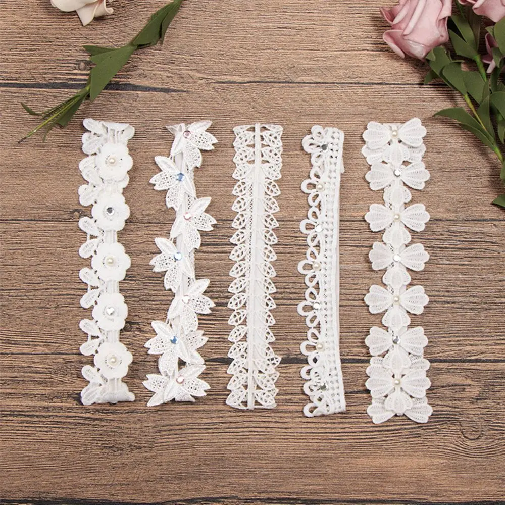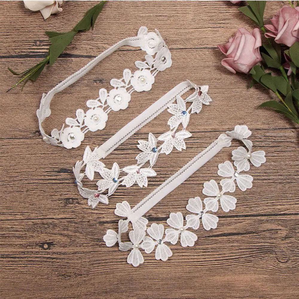 Кружевная Цветочная корона для маленьких девочек, ободок для волос с вышивкой для девочек, повязка для волос с бантом для принцессы
