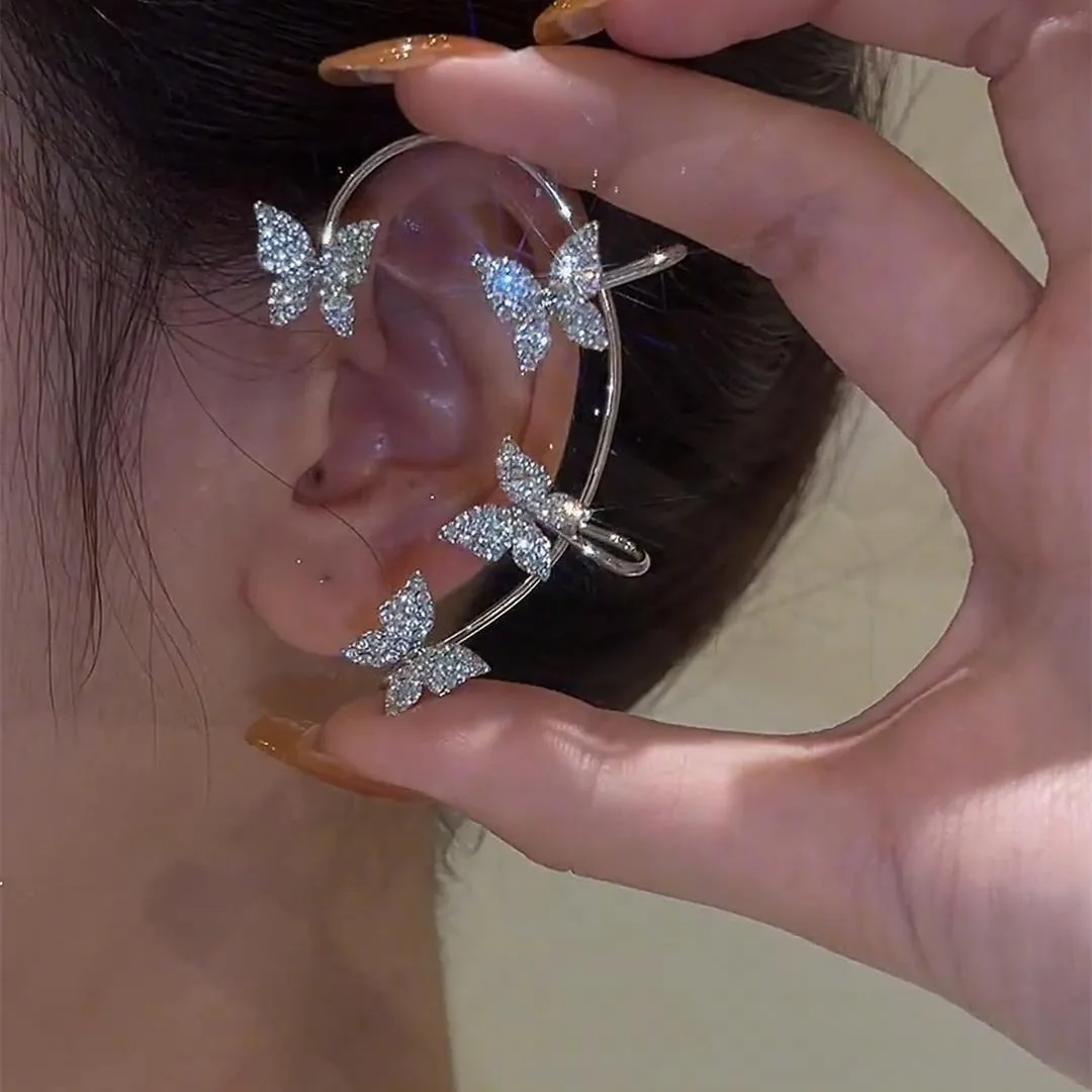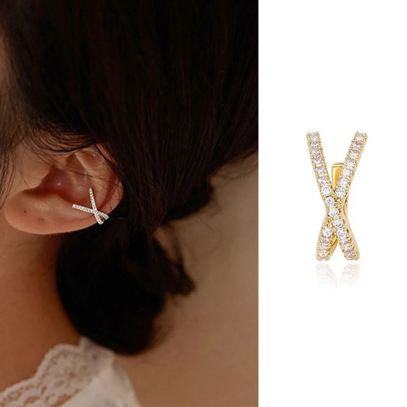Посеребренные металлические клипсы-бабочки для ушей без пирсинга для женщин, сверкающие циркониевые клипсы для ушей, серьги-каффы, свадебные украшения
