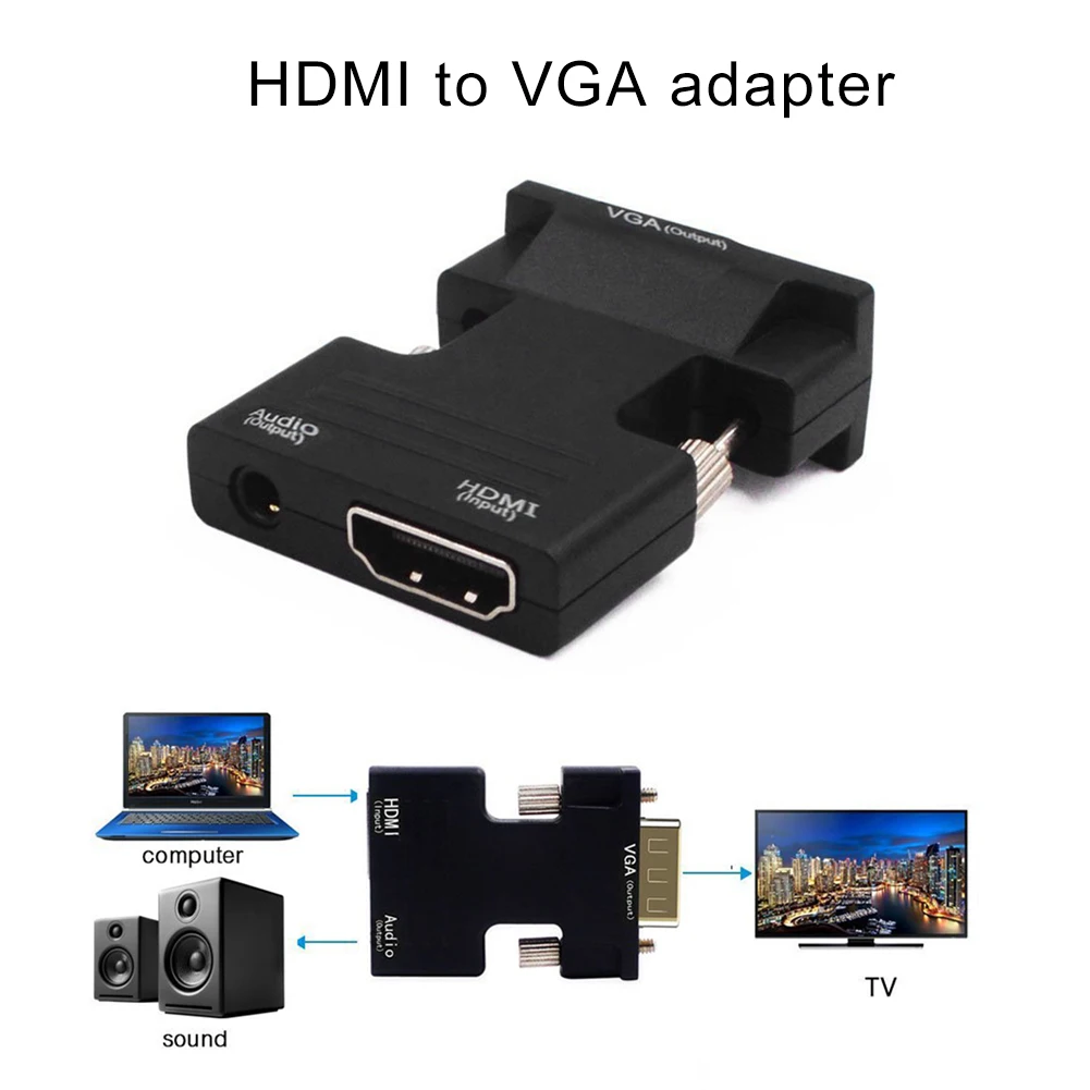 Адаптер HD 1080P HDMI-VGA, кабель-конвертер для ПК, ноутбука, ТВ-приставки, проектора